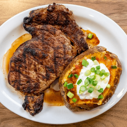 A sizzling 10 oz. sirloin served with your choice of crispy fantail shrimp or delicious grilled shrimp on a skewer