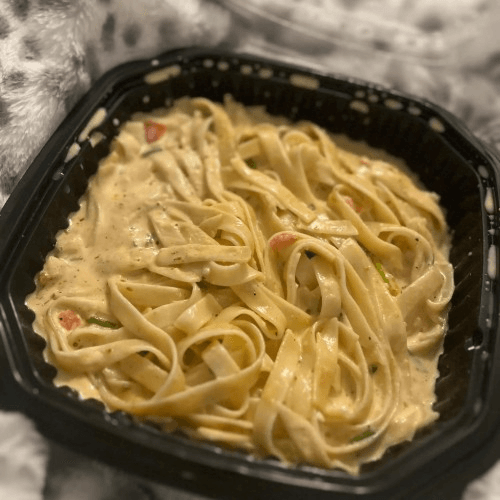 A generous portion of pasta with our spicy homemade alfredo sauce