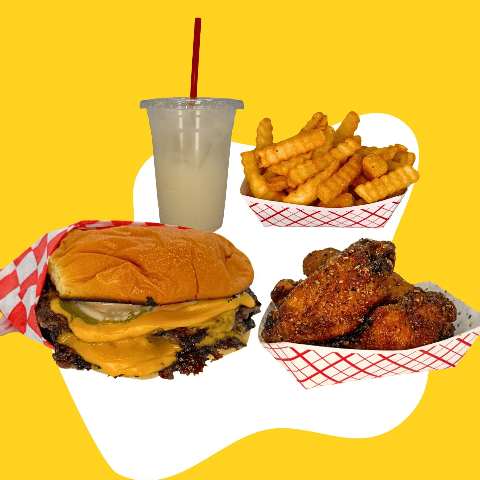 Double Smash Burger, Fries, Drink, 6 Crispy Wings